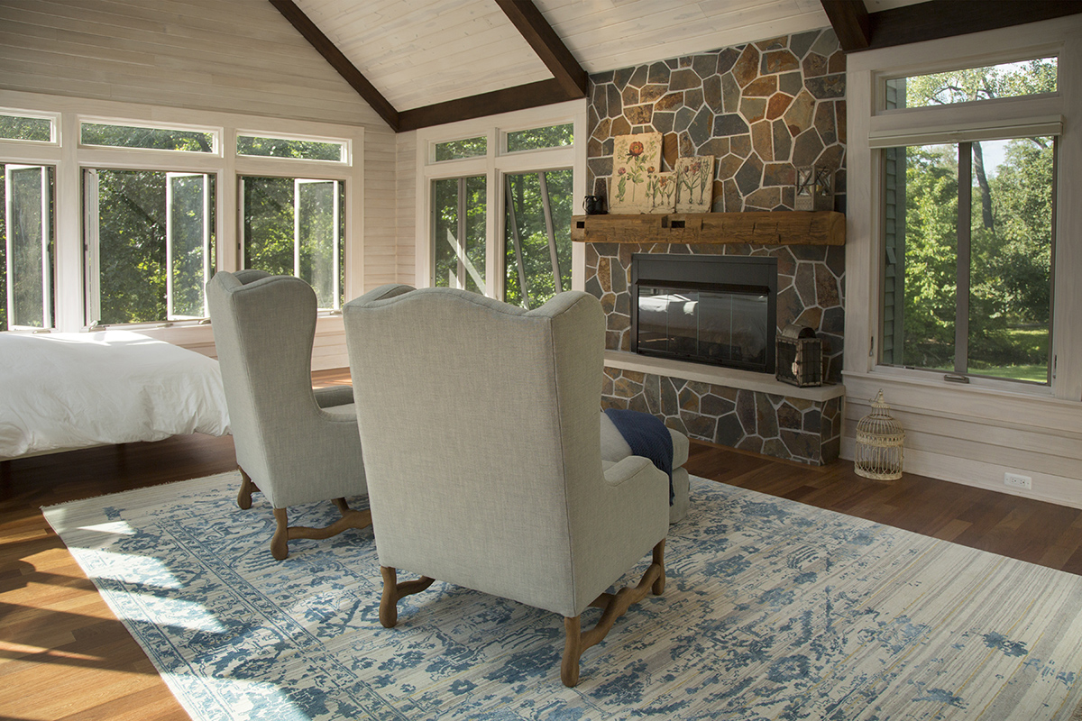 Farmington Hills, Michigan - Two story addition with a first floor screened in porch, and second floor sleeping porch with fireplace total square feet 1,874 square feet. Deck design for barrier free access 950 square feet.